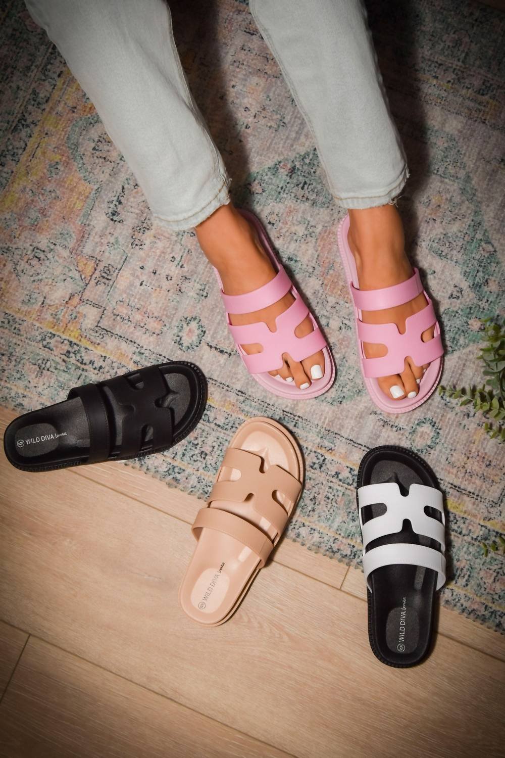 Classicly cute and all-day-wearable. We love this sandal.Embrace summer style with the Women’s Jenny Sandals by WILD DIVA, perfectly crafted for comfort and fashion-forward flair. These sandals feature an open toe and flat heel design, ideal for vacation strolls or streetwear looks. Made from quality PVC, they offer both durability and a modern aesthetic. Perfect for your Thanksgiving travels, these sandals are an essential addition to your summer wardrobe.