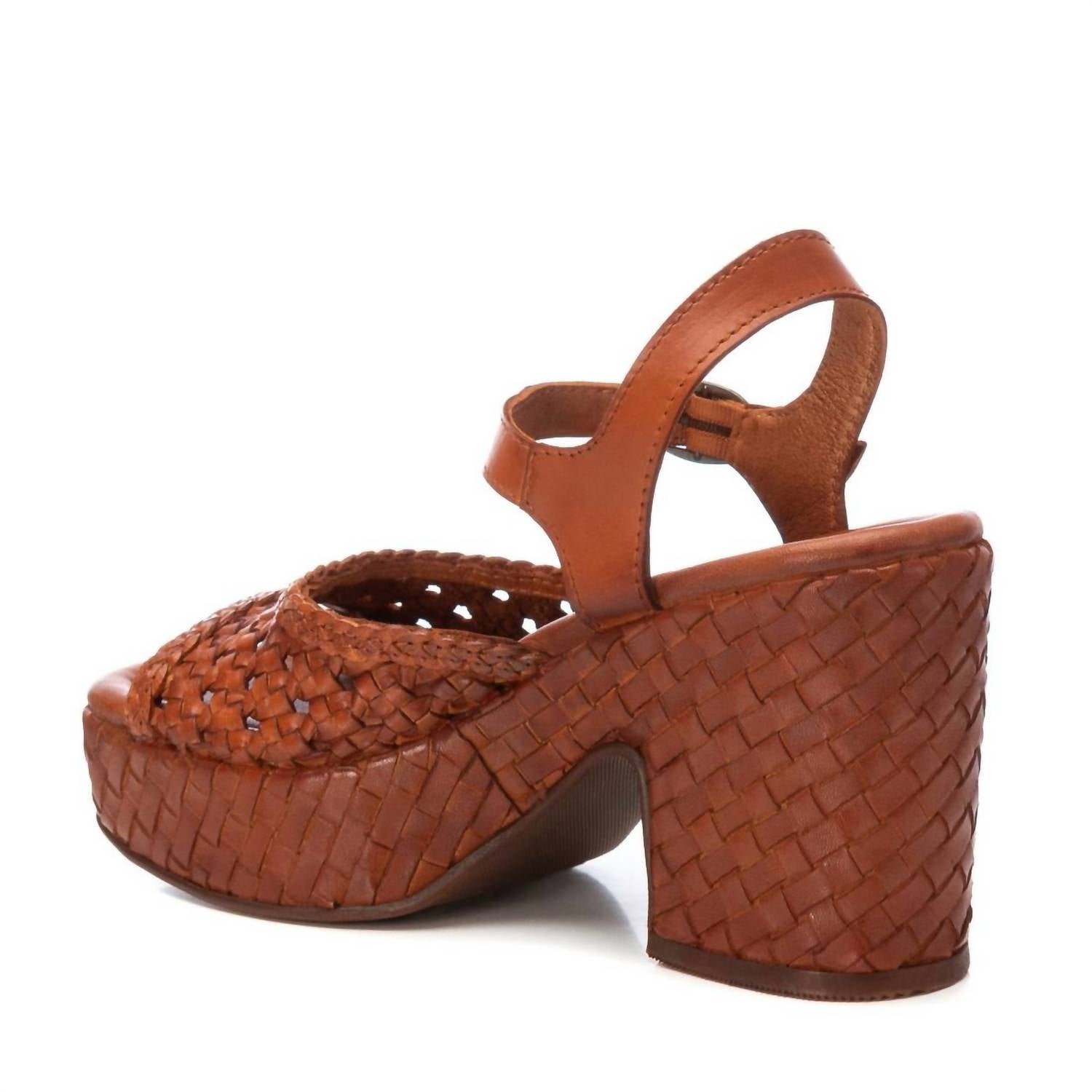 Classicly cute and all-day-wearable. We love this sandal.Introducing the Carmela Leather Heel Sandals by Xti, expertly crafted for both comfort and style. Made from the Genuine Leather Collection, these women’s sandals boast a chic camel hue perfect for any occasion. The open-toe design and chunky high heel, standing at 3.94 inches, effortlessly enhance your look. Ideal for work or play, these sandals are a must-have in your wardrobe.