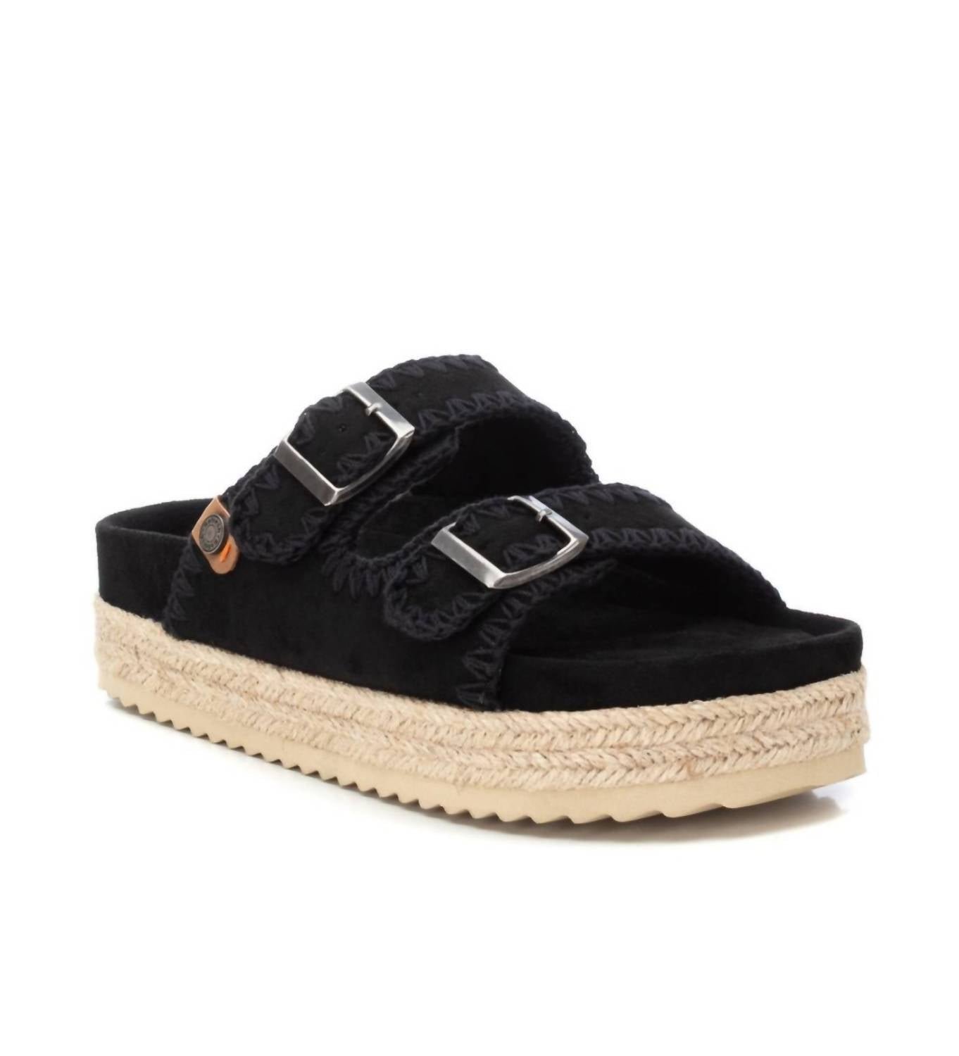 Flowy dresses, cropped pants, and even jumpsuits… this sandal works with them all!This Flat Sanda features a double shovel design with adjustable buckles for a customized fit. The bios sole is wrapped in matching suede, extending to the jute-lined, non-slip base. PETA-certified vegan. The round toe and flat heel ensure all-day comfort with classic charm.