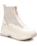 Say hello to the perfect, most versatile boot. The ankle height makes this style easily transition from day to night. Wear them with your favorite skinny jeans and tee for a more laid back look, or pair them with your favorite mini dress and jacket for a night out on the town.These 1.96 in booties are the perfect blend of casual and comfort. Front zipper and stretch upper loop for easy fit in. Lightweight. Non-slip rubber sole.