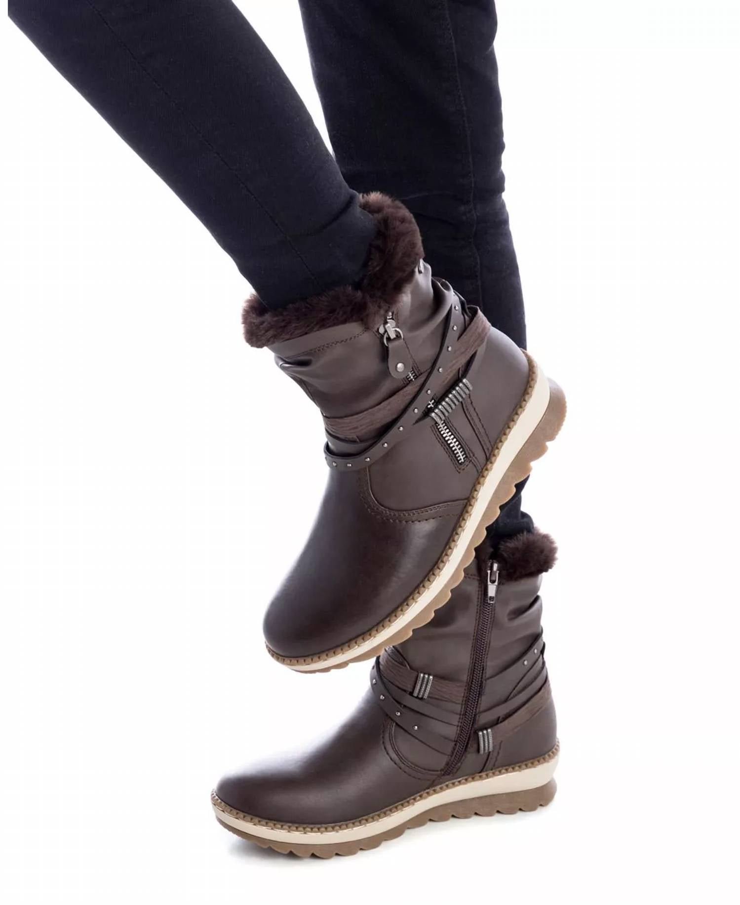 Rainboots so cute, you’ll want to wear these even on the lightest drizzle days.This Women’s Winter Bootie features decorative straps, an outer side zipper, plush fur lining, and a practical side zipper closure. With a lightweight non-slip rubber sole, 1.57-inch heel, and round toe design, these booties combine style, warmth, and comfort for the colder months.